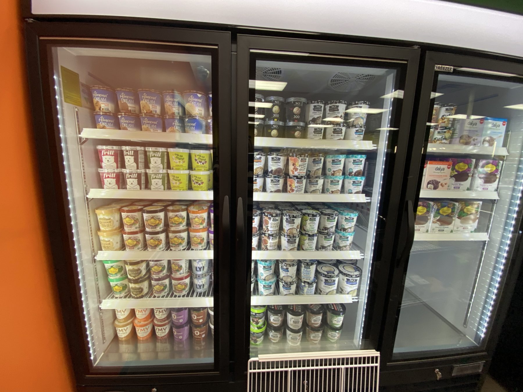 The freezers are filled with food like ice cream, mock meats from a variety of companies, and so much more. In the fridge section you’ll discover new plant milks, Good & Green plant-based deli slices, every Miyoko’s cheese under the sun and other goodies.