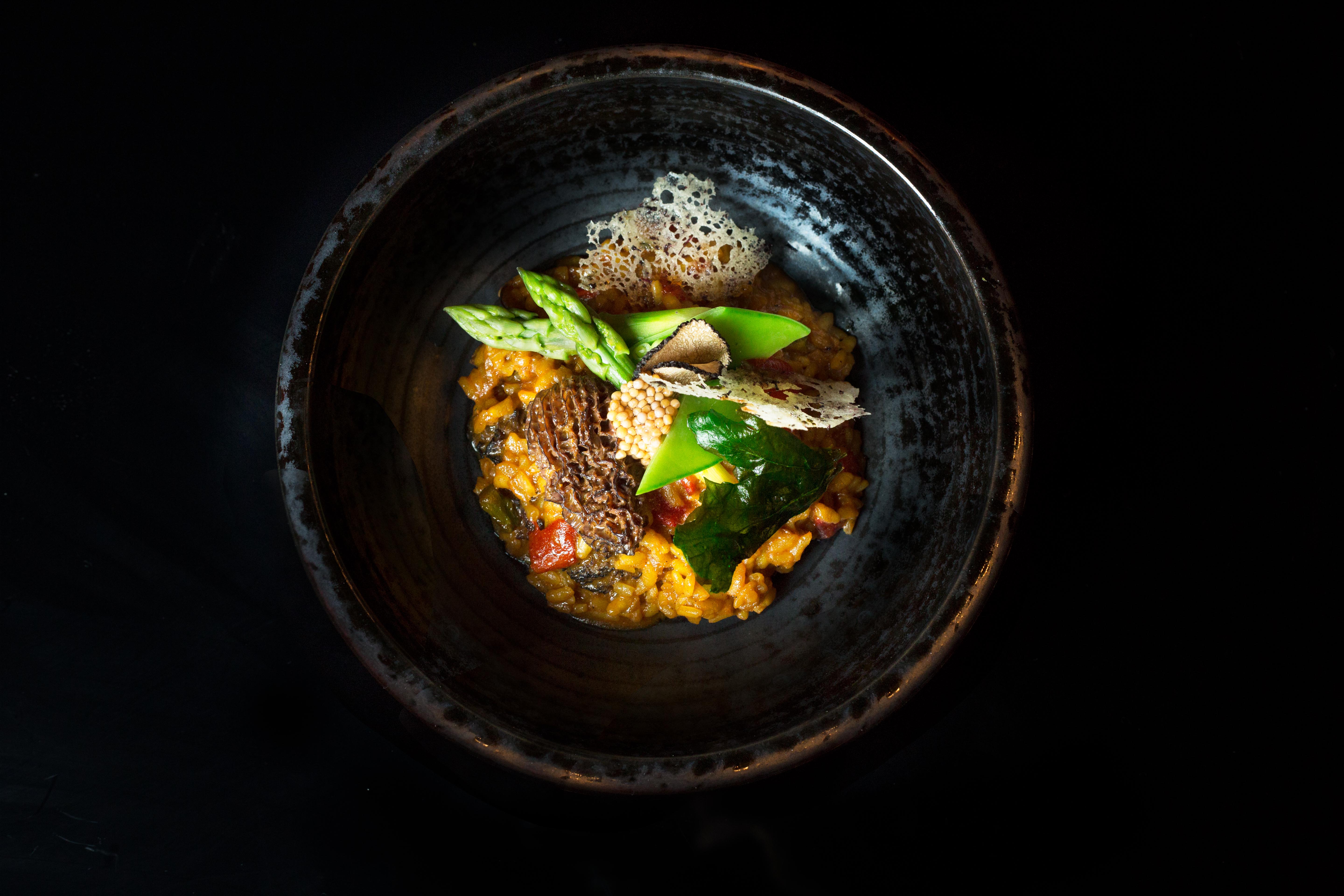 Arroz Meloso con Setas Bomba Rice with Morel and Chanterelle Mushrooms and Australian Black Truffle paired with Raul Perez Ultreia St. Jacques Mencía 2016, Chef Oscar Amador, EDO Gastro Tapas & Wine