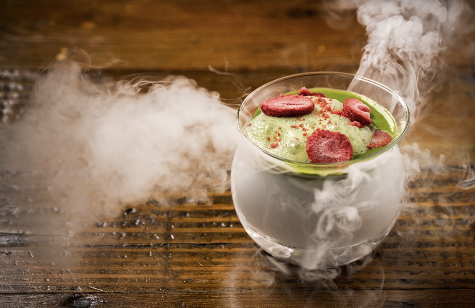 Chilled Sweet Pea, Spinach, and Mint Soup with Basil–Mint Foam and Fresh Strawberries paired with Albert Bichot Les Vaillons Premier Cru Chablis NV – Chef Yuri Szarzewski, EATT Gourmet Bistro, Partage