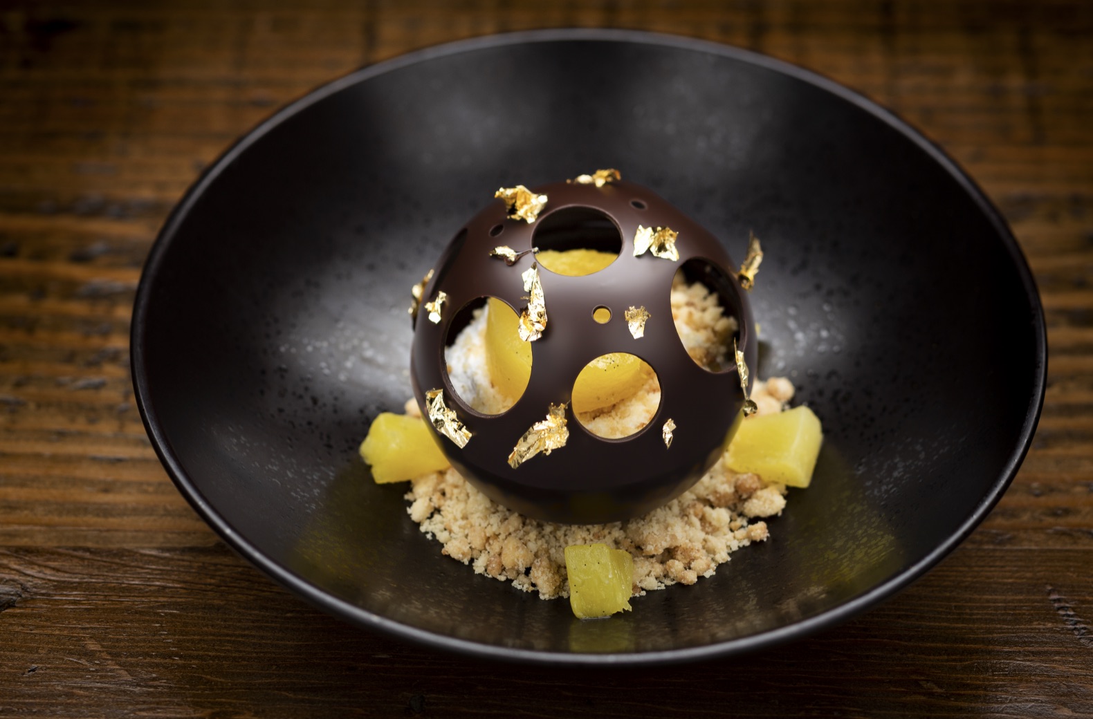 Chocolate Sphere with Coconut Mousse and Candied Pineapple paired with Albert Bichot Crémant de Bourgogne Brut Réserve NV – Chef Vincent Pellerin, EATT Gourmet Bistro, Partage